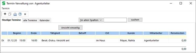 Haben Sie in Ihren persönlichen Einstellungen die Terminablauf- Erinnerungsfunktion aktiviert, wird diese Karteikarte bei jedem Programmstart automatisch geöffnet.