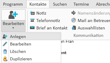 Aufruf der Funktion Kontakt anlegen |
