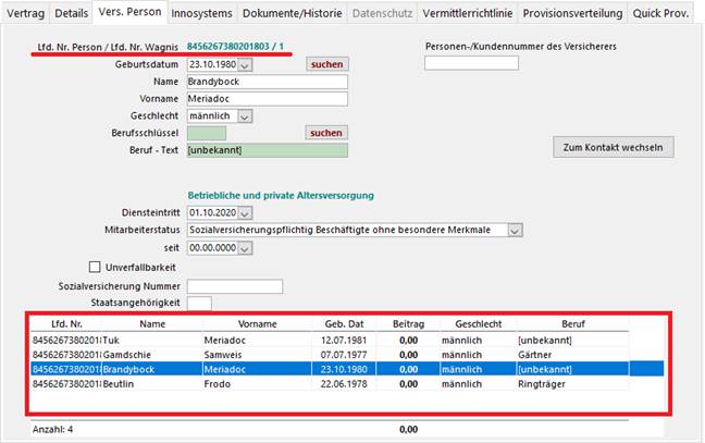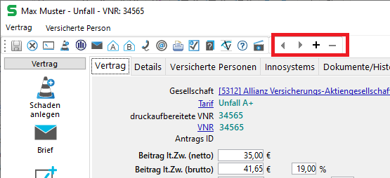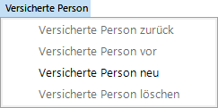 Versicherte Personen (VP) können nur in Kranken-, Unfall- und Lebensversicherungen hinterlegt werden. VP, welche über [suchen] in einer Lebensversicherung eingefügt wurden, bekommen den Vertrag auch in ihrer eigenen Vertragsübersicht angezeigt.