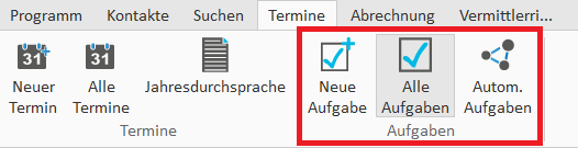Die Aufgabenverwaltung kann über das Menü „Termin“