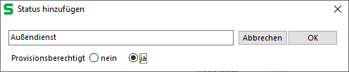 Hinweis: Wenn Sie über die Schältfläche „+“ einen neuen Status für den Mitarbeiter anlegen und diesem nicht als Provisionsberechtigt anlegen, dann erscheint der neu angelegte Mitarbeiter nicht als solcher, sondern als einfacher Kontakt.