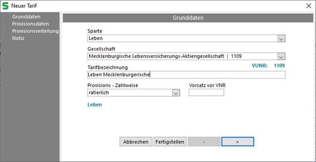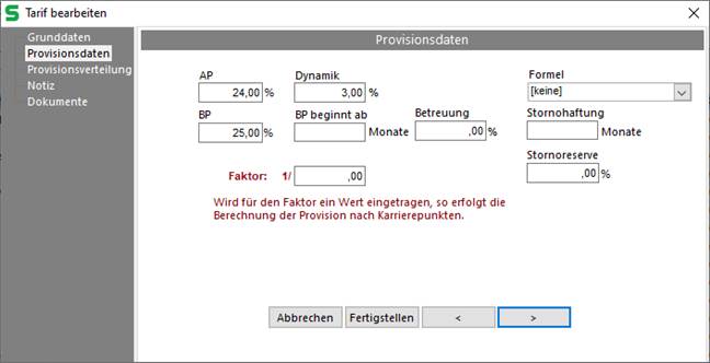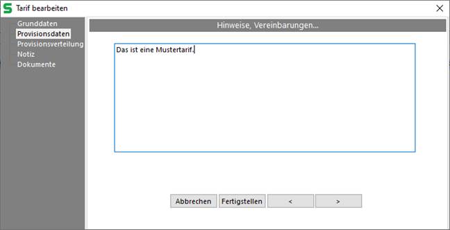 Wenn Sie die Provisionsdaten erfasst haben, können Sie mit dem Button „Fertigstellen“ den Tarif speichern.