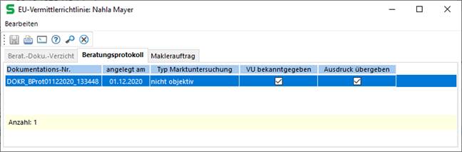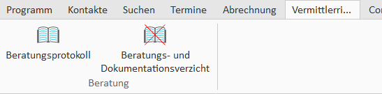 Neben dem Aufruf der Karteikarte für Beratungsprotokolle über