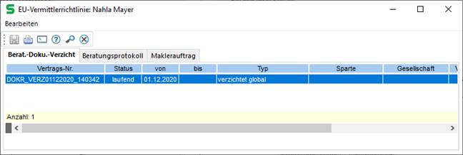 Ansicht der Karteikarte Beratungs- und Dokumentationsverzicht