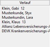 Im Verlauf werden die Namen aller Personen aufgelistet, die Sie, während Ihrer aktuellen SALIA® - Sitzung bearbeitet haben. Über einfachen Mausklick auf ihren Namen können Sie die gewünschte Person schnell wieder in Ihren Arbeitsbereich übernehmen.