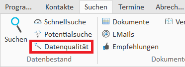 Aufruf des Fensters zur Kontrolle der Datenqualität