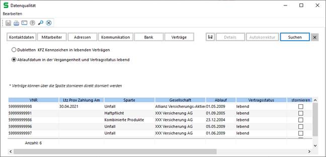 Datenqualität: Suche lebende Verträge mit abgelaufenem Vertragsdatum