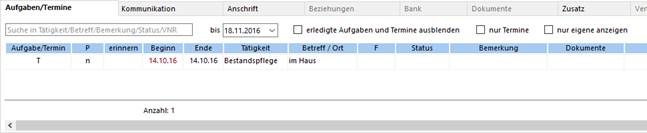 Mit einfachem Mausklick auf den Titel einer Karteikarte kann diese für die Anzeige/ Bearbeitung ausgewählt werden. Der Titel der aktiven Karteikarte wird fett dargestellt.