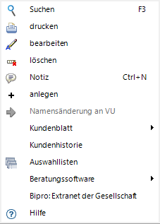 | Öffnen des Suchen- Fensters für Kontakte, Verträge und Schäden | |