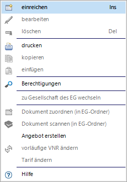 Um ein Angebot zu erstellen oder ein neues Geschäft einzureichen, stehen Ihnen entsprechende Kontextmenü – Einträge zur Verfügung.