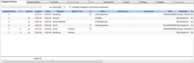 In dieser Karteikarte werden alle anstehenden Aufgaben und