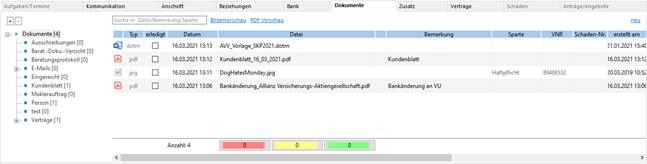 der Dokumentenablage ab, der während Ihrer Arbeit mit dem aktiven Kontakt