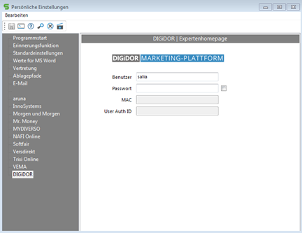 1. Benutzername und Passwort unter "Optionen → Persönliche Einstellungen → DIGiDOR" hinterlegen.