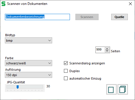 Fenster der Scan-Funktion bei Nutzung des NAPS2 Scanner-Moduls