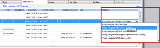 Scrollen Sie dazu ganz nach rechts und machen Sie einen Doppelklick auf die Spalte Kategorie beim betreffenden Dokument.