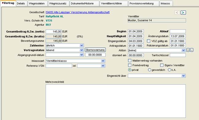 Einzustellen ist lediglich das Datum der Fälligkeit. Beachten Sie dabei aber, dass dieses Datum sich auf die Hauptfälligkeit und Zahlweise bezieht, die im Vertrag vereinbart wurden.