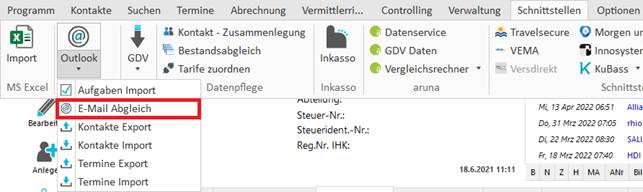 Der E-Mail- Abgleich ermöglicht Ihnen den Import der E-Mail- Nachrichten, die Sie mit MS Outlook gesendet bzw. empfangen haben.
