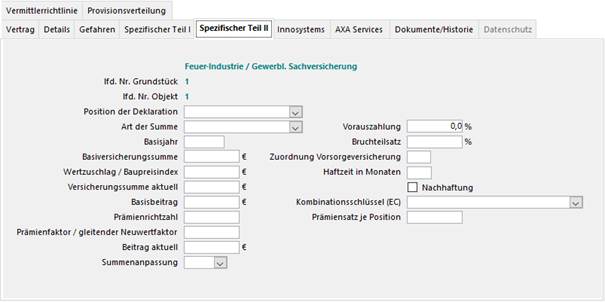 Karteikarte Spezifischer Teil II [Feuer- und Gewerbliche Sachversicherung]