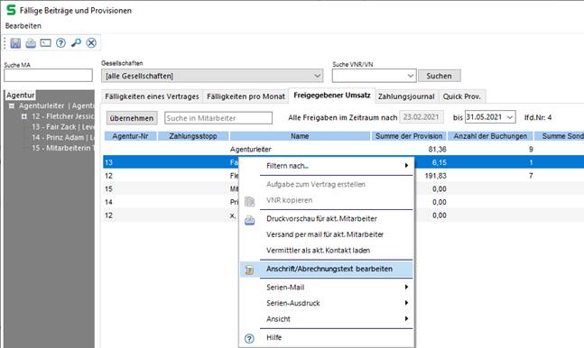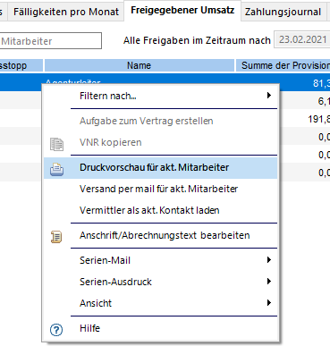 In der Karteikarte „Freigegebener Umsatz“ werden alle, unter
