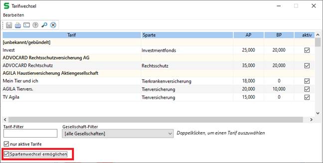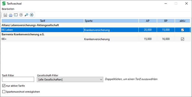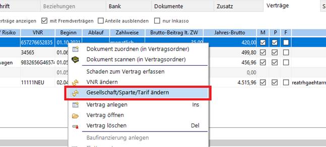 Rufen Sie dazu im Kontextmenü wieder „Tarif/Gesellschaft ändern“ auf.