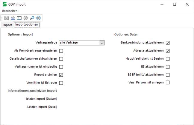 GDV - Importoptionen festlegen