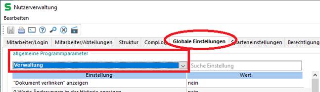 Die Karteikarte „Globale Einstellungen“ gibt Ihnen die Möglichkeit, das System SALIA® für alle Nutzer gleichermaßen zu konfigurieren. Dazu stehen Ihnen unterschiedliche Rubriken zur Verfügung, welche über die allgemeinen Programparameter: