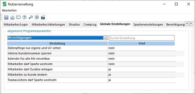 Abbildung 34 - Globale Einstellungen für Berechtigungen