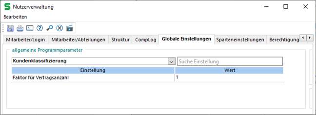 Abbildung 42 - Globale Einstellungen für Kundenklassifizierung