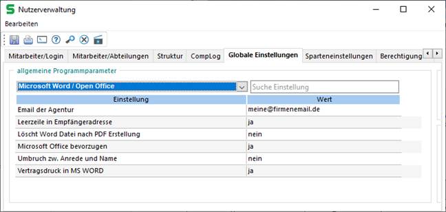 Abbildung 43 - Globale Einstellungen für Microsoft Word/OpenOffice