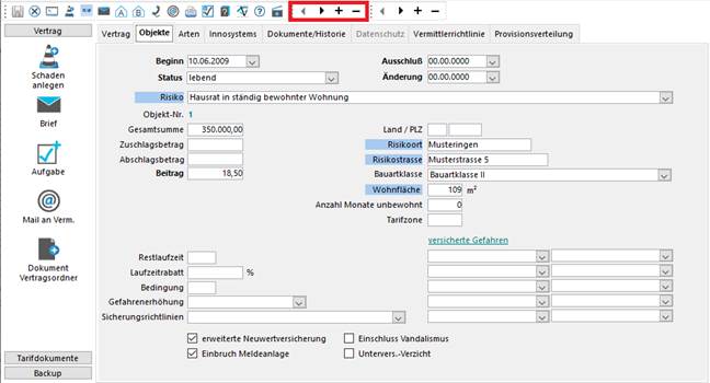 In „Objekte“ kann das Risiko und die Risikoanschrift hinterlegt werden.