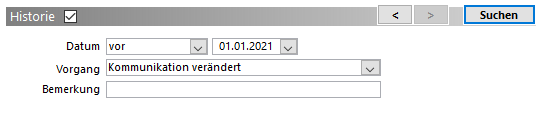 Die erweiterte Suche nach Kontakten und/oder Verträgen ist kombinierbar mit der Suche nach Historieneinträgen.