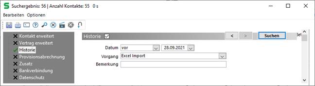 Kontakte über das Importdatum suchen