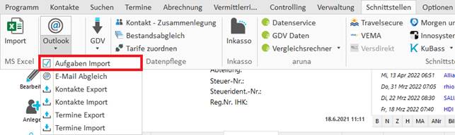 Aufruf Aufgaben-Import aus MS Outlook