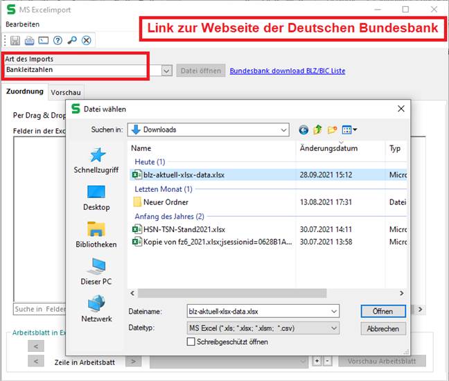 1. Laden Sie die aktuelle Bankleitzahlendatei als Exceldatei von der Webseite der Bundesbank herunter.