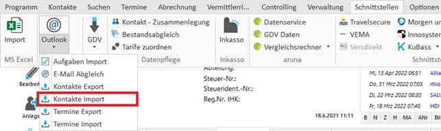 Aufruf Kontakte Import