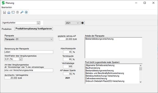 Numerische Felder (nnn.nnn.nnn) zur Eingabe der geplanten Abschlussprämie im Planjahr in €. |