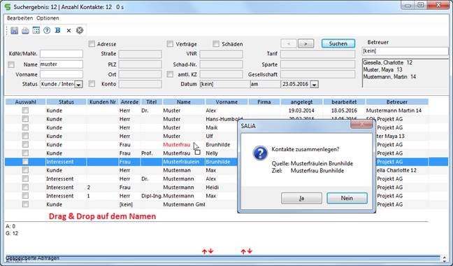 Mit der Kontakt- Zusammenlegung gibt Ihnen SALIA® die Möglichkeit, Personen die mehrfach im System vorhanden sind, zu einer Person zusammenzufassen.