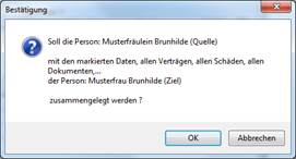 Sind Sie selbst der Besitzer der Quellperson, werden alle Dokumente, Kommunikations- und Vertragsdaten einschließlich der Schadensfälle der Quellperson auf die Zielperson übertragen. Im Anschluss daran wird die Quellperson aus dem SALIA® - System entfernt.