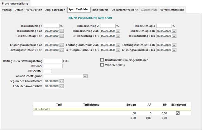Krankenversicherung - Karteikarte Spezielle Tarifdaten