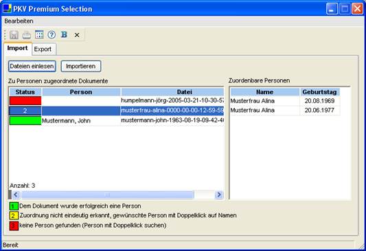1) Es wird versucht anhand des Dateinamens eine Person zuzuordnen. Eventuelle muss eine händische Zuordnung der Person zu einem PDF-File erfolgen.