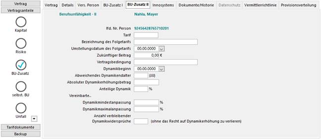 Karteikarte Leben - BU II (Berufsunfähigkeits- Zusatzversicherung Teil II)
