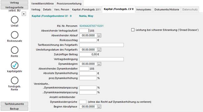 Karteikarte Lebens -Kapital-/ Fondsgebundene Lebensversicherung Teil II