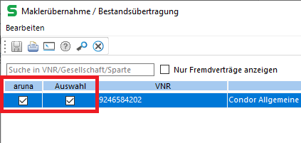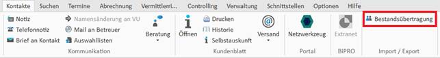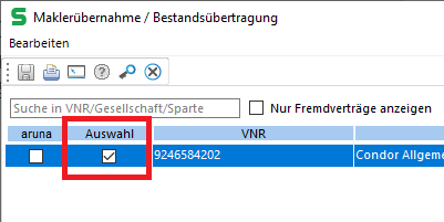 Aufruf des Fensters Maklerübernahme / Bestandsübertragung