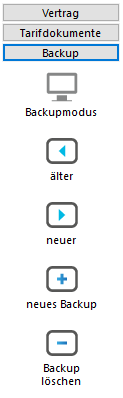 Schaltflächen des Backup-Menüs