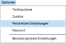 Neben dem Aufruf der Funktion „Persönliche Einstellungen“ über das Menü steht ihnen auch im ExpressMenü die Schaltfläche „Einstellungen“ zur Verfügung. Diese Schaltfläche erreichen Sie über die Gruppe Optionen.