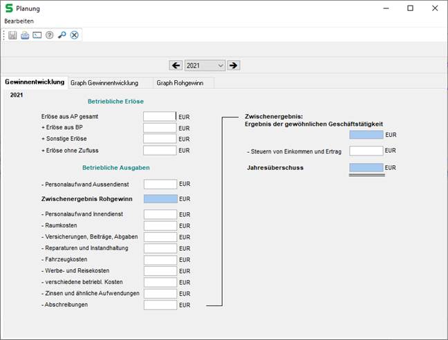 Diese Funktion gibt Ihnen die Möglichkeit, die Entwicklung des Betriebsergebnisses einzusehen oder zu planen.