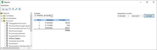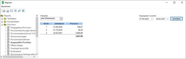 Im Report Freigegebene Provision erhalten Sie Einblick in alle Provisionen, die bereits für die Auszahlung freigegeben wurden, aber noch nicht zur Auszahlung gekommen sind.