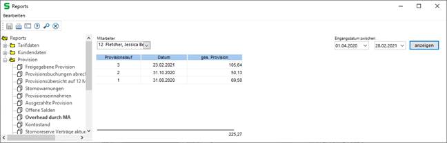 Der Report Overhead durch MA gibt einen Überblick über erzielte Provisionen durch Overhead.
