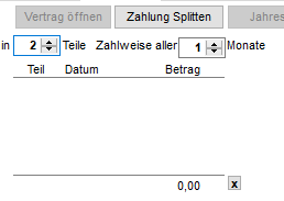 Über die Schaltfläche „Zahlung splitten“ können Sie eine Zahlung auf mehrere Monate aufteilen. Beim ersten Klick öffnet sich das Anzeigefeld und Sie können die gewünschten Einstellungen vornehmen.
