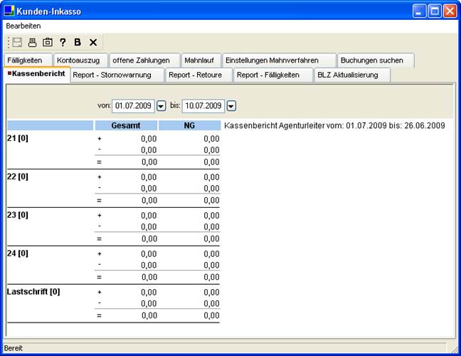 Abbildung 8 - Registerkarte "Kassenbericht"